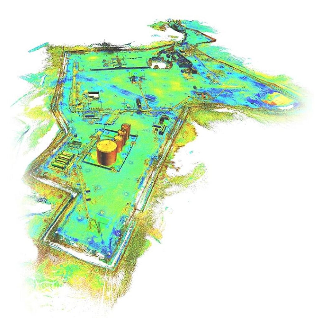 Laser scanning, also known as 3D laser scanning or LiDAR (Light Detection and Ranging), uses laser beams to capture millions of spatial data points in seconds. This information is processed into a detailed 3D digital model of physical assets such as pipelines, refineries, tanks, and offshore platforms. The result is a precise, high-resolution digital twin that engineers and operators can analyze, plan, and use for decision-making.